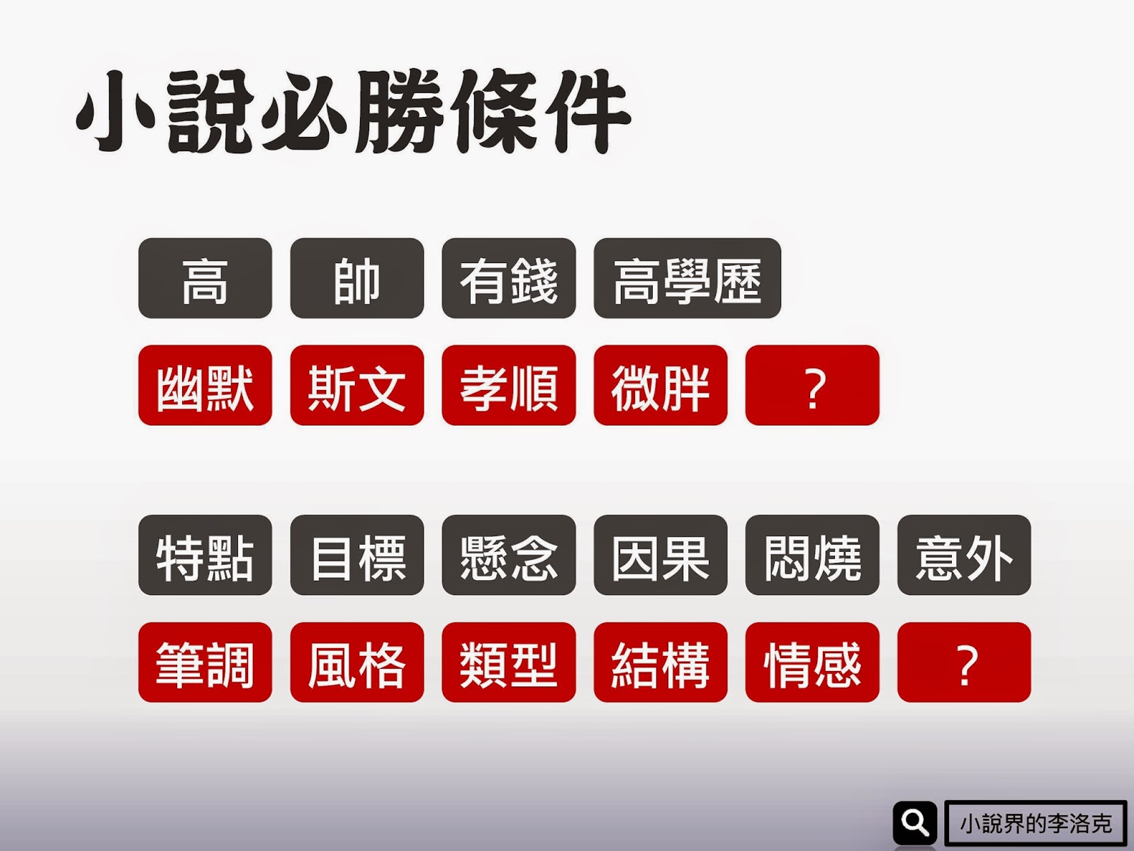 文章還有很多篇!慢慢學吧,洛克坦白告訴你,這些都不是小說暢銷的致勝一擊,但偏偏你又不能不會。