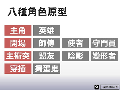 但我始終覺得辨識角色原型是個很棒的概念,不論是用來解析或是提高編劇效率都很好用,故本篇便將它濃縮,成為懶人版。