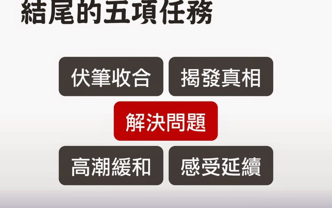 2. 情節的描寫重點 沒有情節就沒有故事,這是絕對的,但是,故事並不是一堆情節的總合。 作文講究結構,「起、承、轉、合」;好的故事也一樣,觸發堆砌、衝突轉折、高潮結尾,這樣故事才會給讀者滿足的感覺。 如果洛克用步驟順序來表示故事模型的話,它會是長這個樣子。 觸發、衝突-解決(重複、攀升)、高潮、結尾 故事的開場要觸發故事,故事的尾段則是要有最後大高潮跟結尾。 而故事的中間,則是不斷重複著衝突與解決,一次比一次強烈。 ...