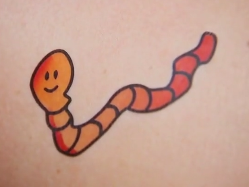 《致第三者》中女配角在肩膀上刺(青)了一隻青鳥,男主角為了示愛,也在肩膀上刺了一隻小蟲,就是下圖: